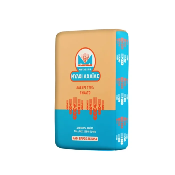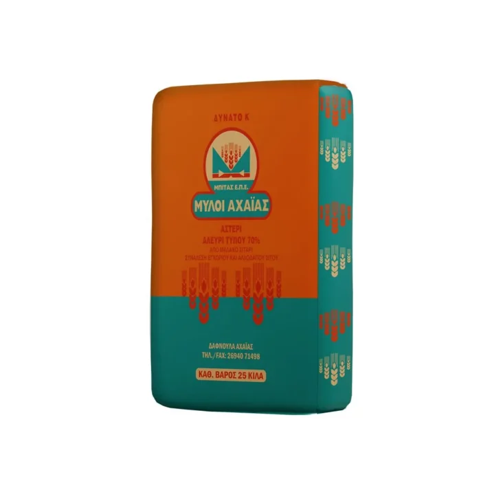 Αλεύρι λευκό αρτοποιίας Τ70%. Αποκλειστικά για χρήση σε ταχυζημωτήριο ή κύλινδρο με μεγάλη μηχανική αντοχή.